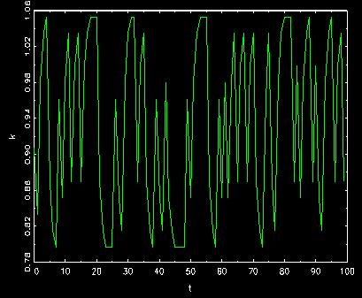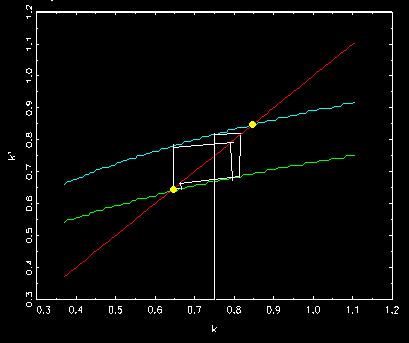 where capital k moves around between two steady states almost forever.