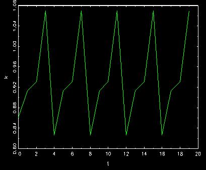 where the movement get into some cycle with four points after a few steps.