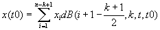 B(i,k)=(t0-t[i])/(t[i+k-1]-t[i])*B(i,k-1)+(t[i+k]-t0)/(t[i+k]-t[i+1])*B(i+1,k-1)