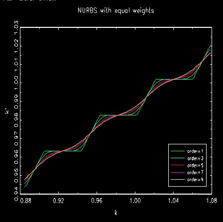 where both x and y are parameterized by t and t0. Parameter k above is the number of order of the system and dB is basis function by De Boor.